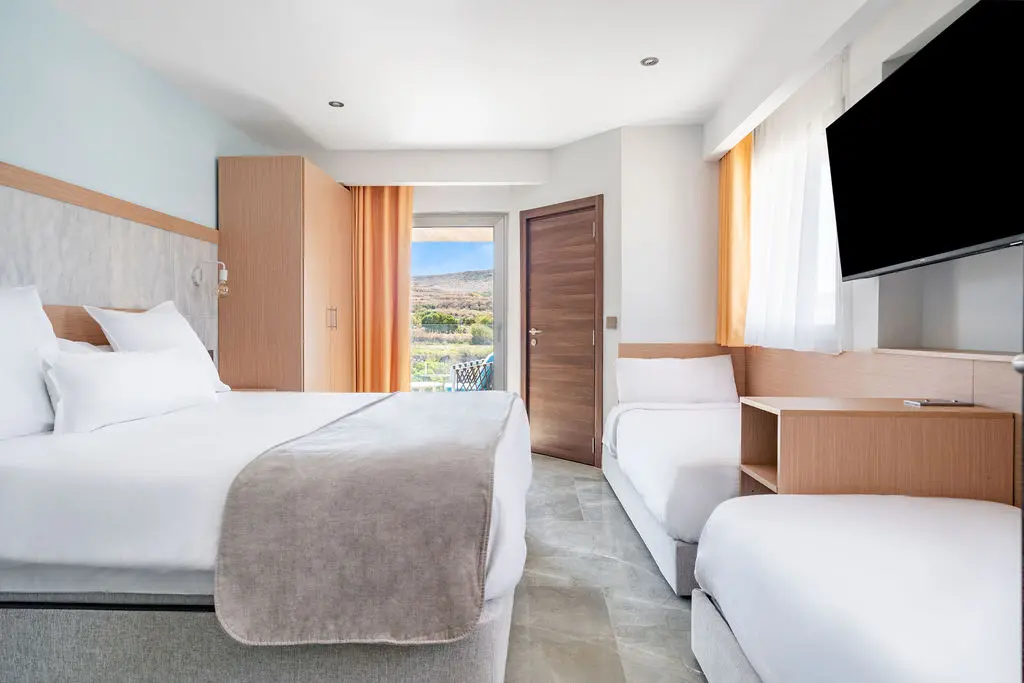 Unwind in peaceful comfort with everything needed for a restful family stay. Wake up rested in a large, comfortable bed, step into a sleek walk-in shower, and ease into the day with thoughtful details at every touchpoint. A 55 inch smart TV with Netflix invites relaxed evenings, while the desk and armchair provide space to read or reconnect. Designed for connection and comfort, this room accommodates up to four guests with one large bed and two single beds.